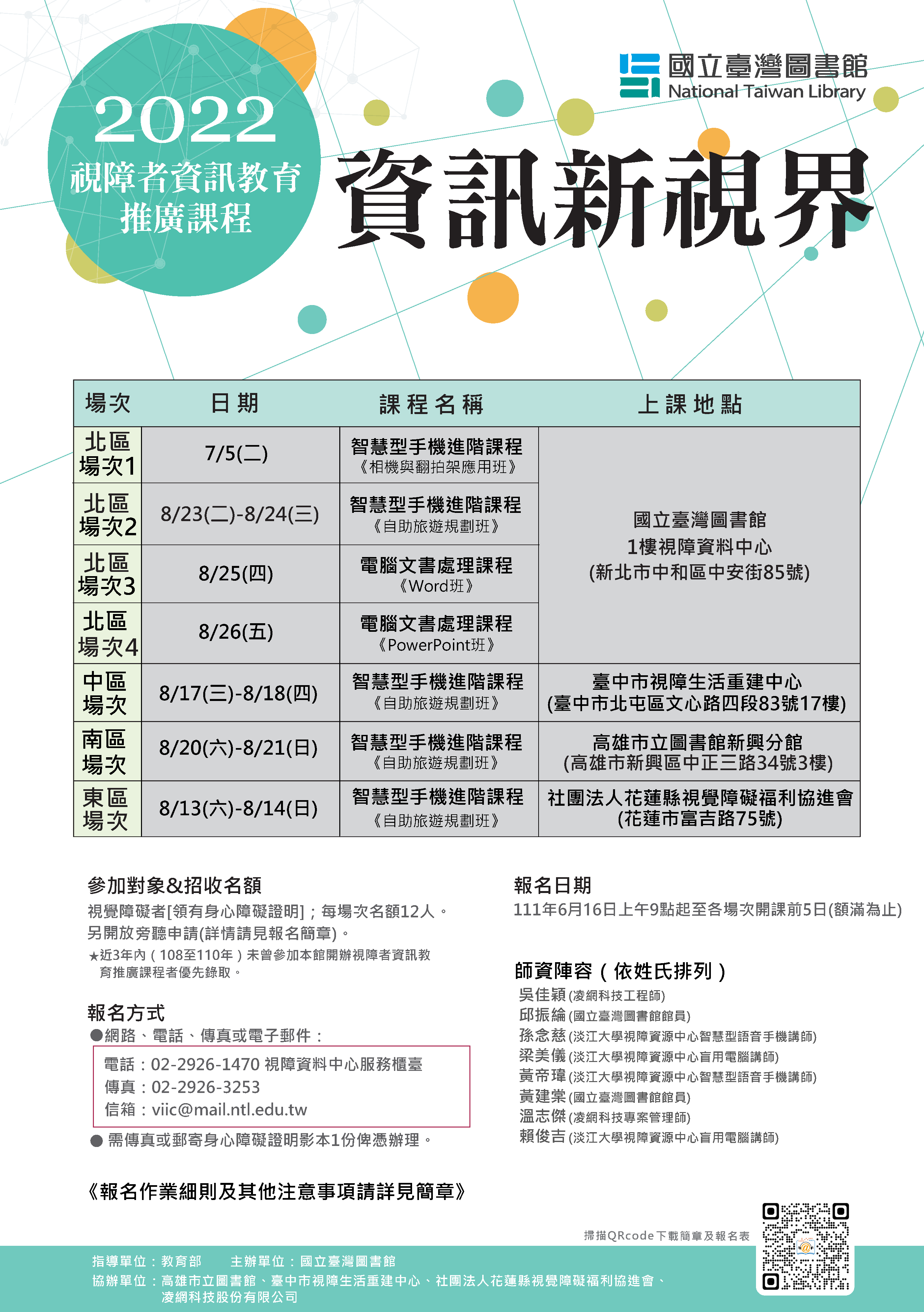 國立臺灣圖書館【 111年資訊新視界 - 視障者資訊教育推廣課程】