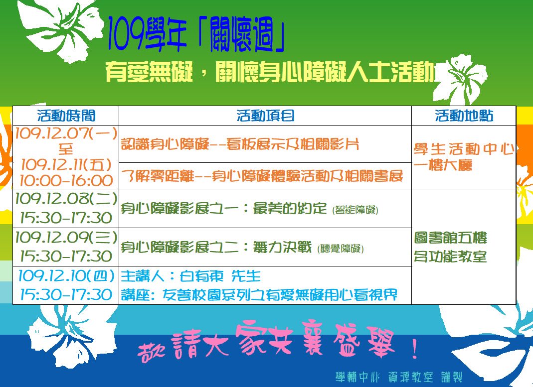 109學年關懷週,有愛無礙~關懷身心障礙人士系列活動