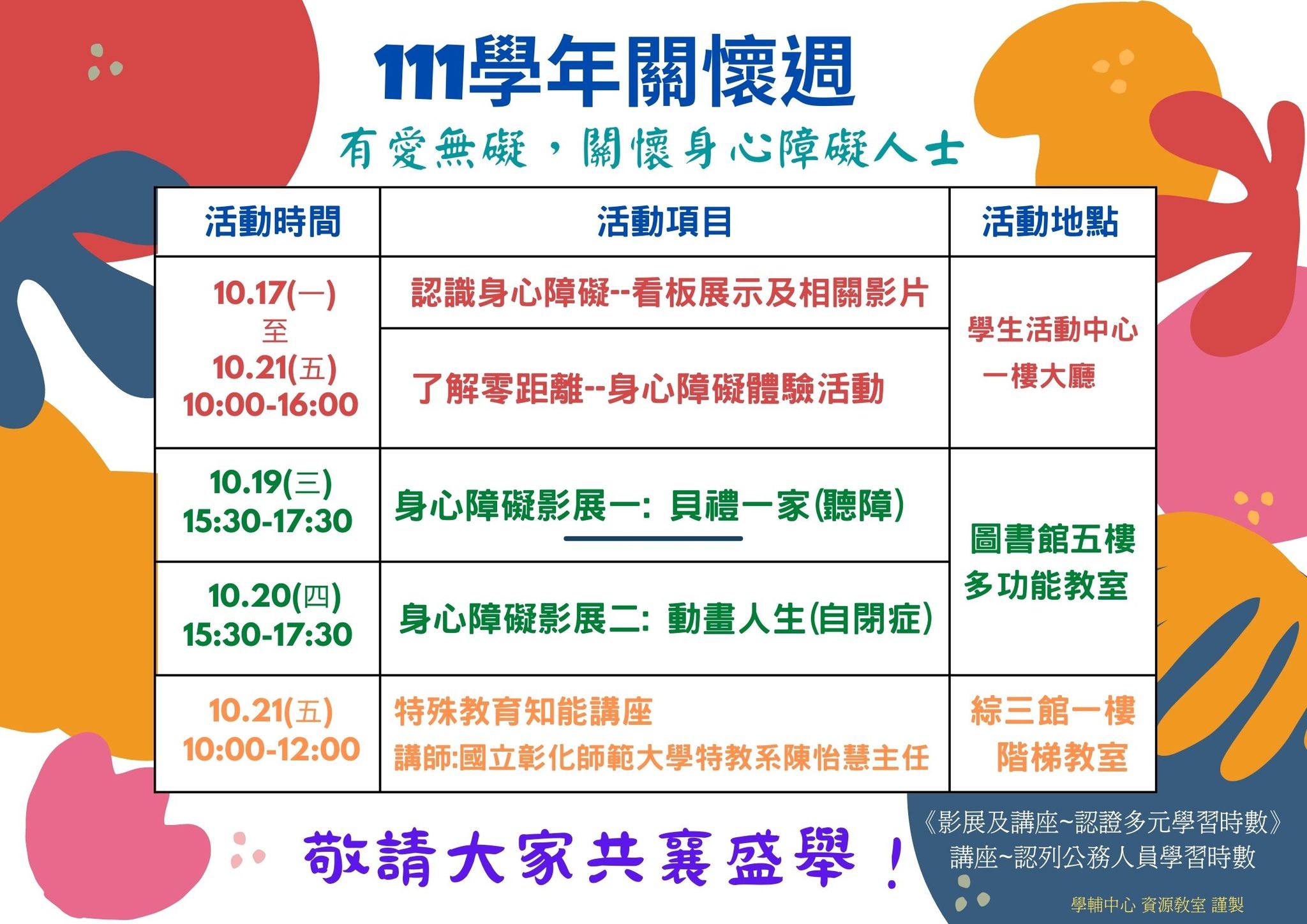 111學年關懷週,有愛無礙~關懷身心障礙人士系列活動