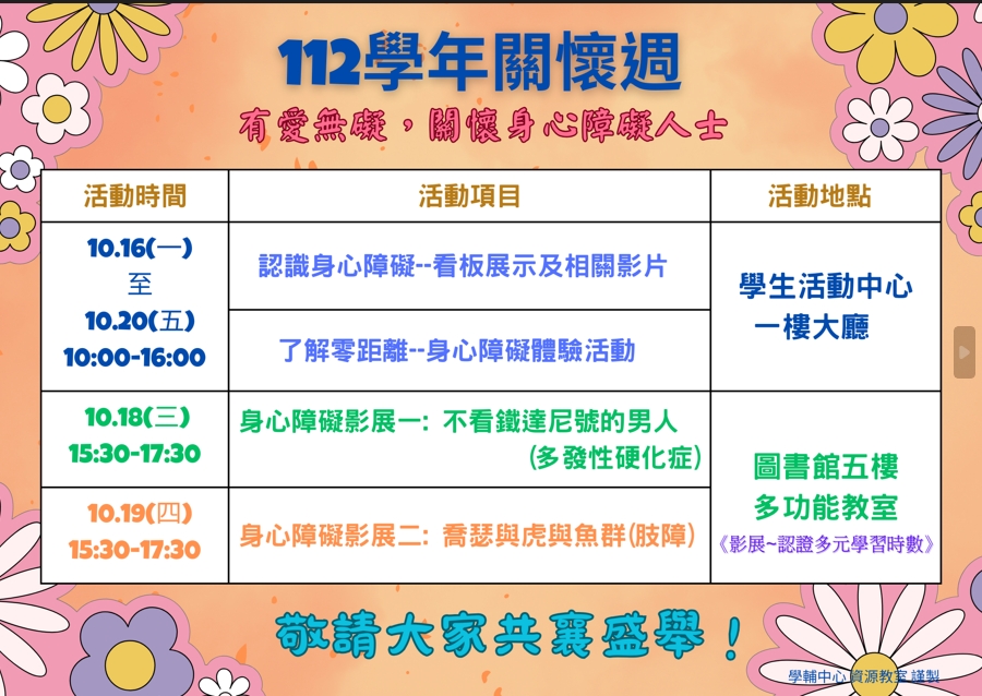 112學年關懷週,有愛無礙~關懷身心障礙人士系列活動