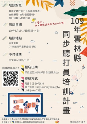 轉知社團法人中華民國聽障人協會「110年聽語障溝通方案同步聽打服務員」招募簡章