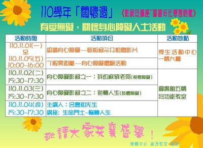 110學年關懷週,有愛無礙~關懷身心障礙人士系列活動