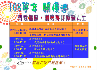 108學年關懷週,有愛無礙關懷身心障礙人士系列活動